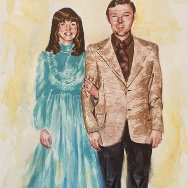 ”Evelyn painted this water color of my parents’ wedding based on various low quality photographs that didn’t even show the bottom of my mom’s dress and dad’s pants. They loved it!”