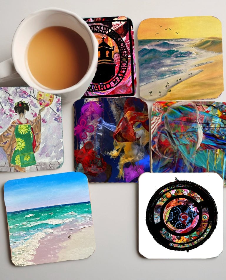 The coasters are Printful crafted from genuine cork, hardboard, with a high-gloss coating that ensures a quality print. The coaster is heat-resistant, water-repellent, and easy to clean—just wipe it with a damp cloth.