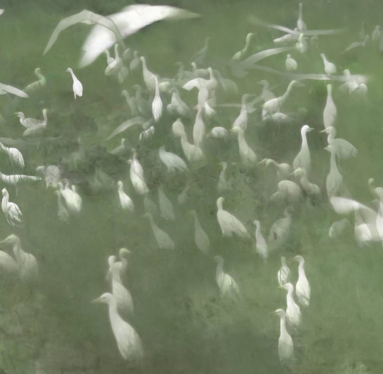The crane in motion in an ethereal, dream experience of flight with soft flapping of wings and feathers. It's over and done in a moment, but the memory is enjoyed evermore in this piece. Photos taken at the San Antonio Zoo, Texas.